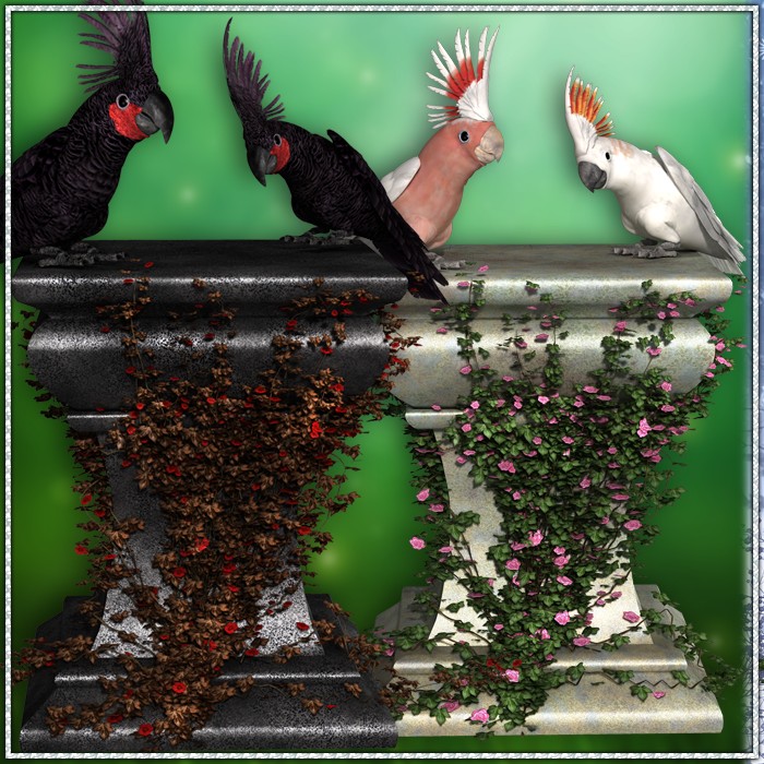 Illustrations of compositions with fairy pedestals in png file format. Rendered in Poser and enhanced in Photoshop. Suitable for all kind of web and print illustration works.